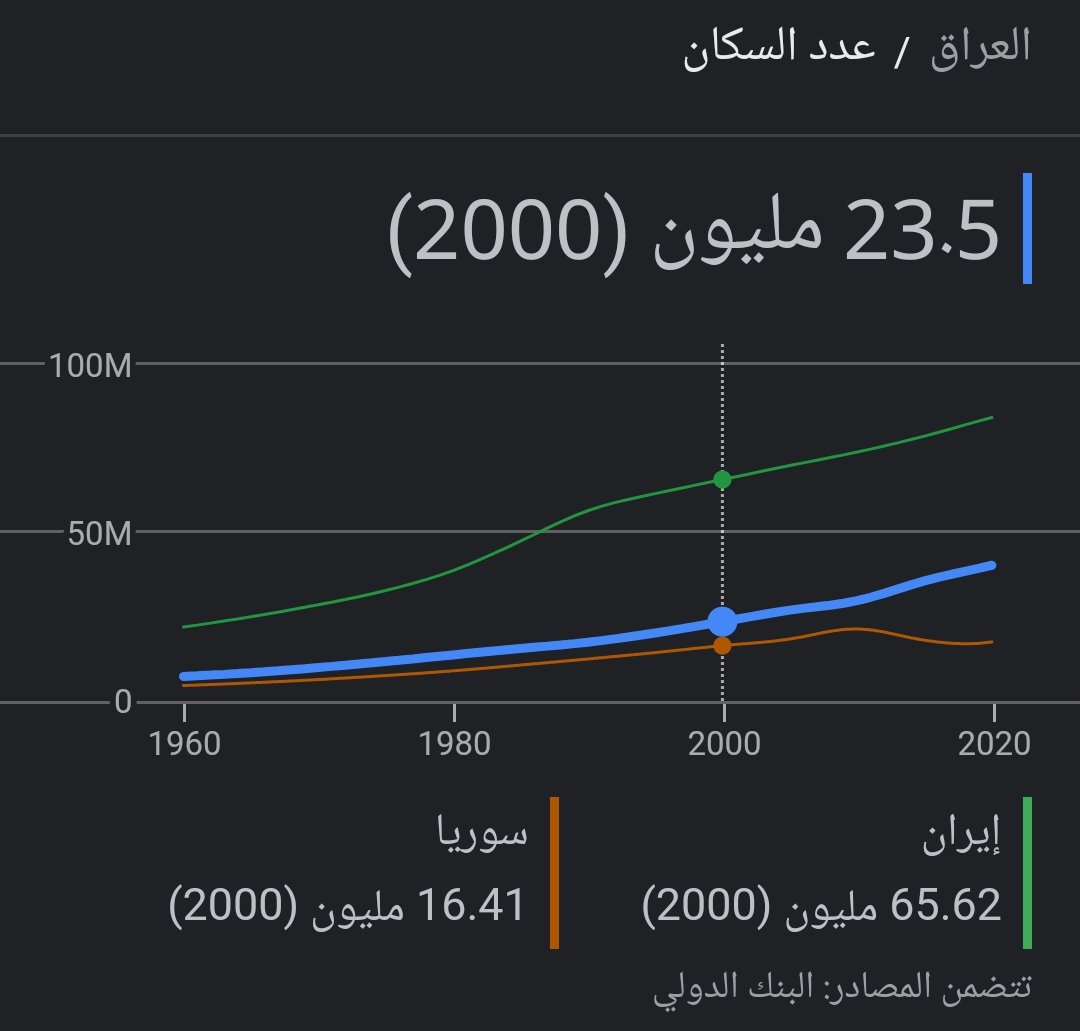 نمو عدد السكان خلال 20 سنة كان ما يقارب المليون نسمة فقط حسب احصائيات #البنك_الدولي #العراق