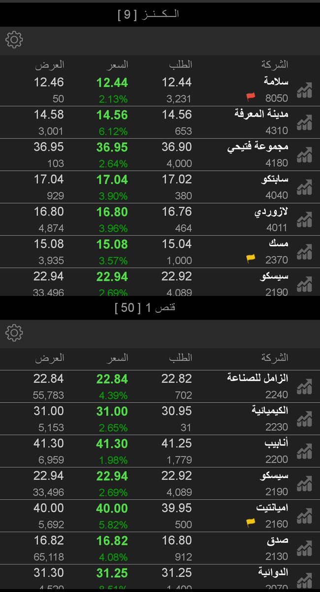 بعض الأسهم التي ظهرت في #تصفية_الكنز