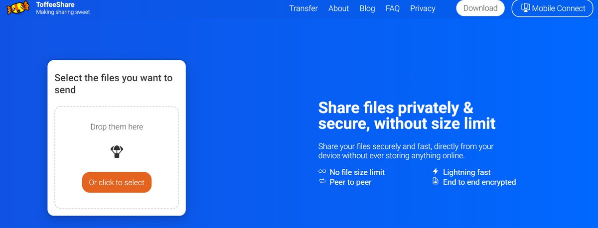 يتميز الموقع عن غيره من مواقع رفع الملفات بفكرة رائعة جدا وهي ان الملفات التي ترفعها لا يتم تخزينها في سيرفرات لديهم كما هو معتاد لدى كثير من المواقع المشابهة، وإنما يتم مشاركة الملف بشكل مباشر Peeer to Peer مع الطرف الاخر
