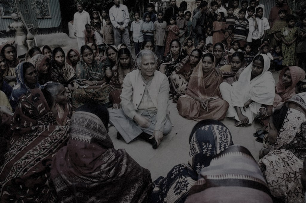 يقول البروفيسور محمد يونس: لم يكن لدي أي تصور على أن حياتي ستكون في يوم من الأيام ذات تأثير وارتباط بحياة الآخرين، في منتصف سبيعينيات القرن الماضي كمحاولة للخروج من الإحباط الذي تسبب به الوضع الاقتصادي الرهيب في بنغلادش قررت أن أحول تقديم الفائدة للفقراءالقريبين من الحرم الجامعي.