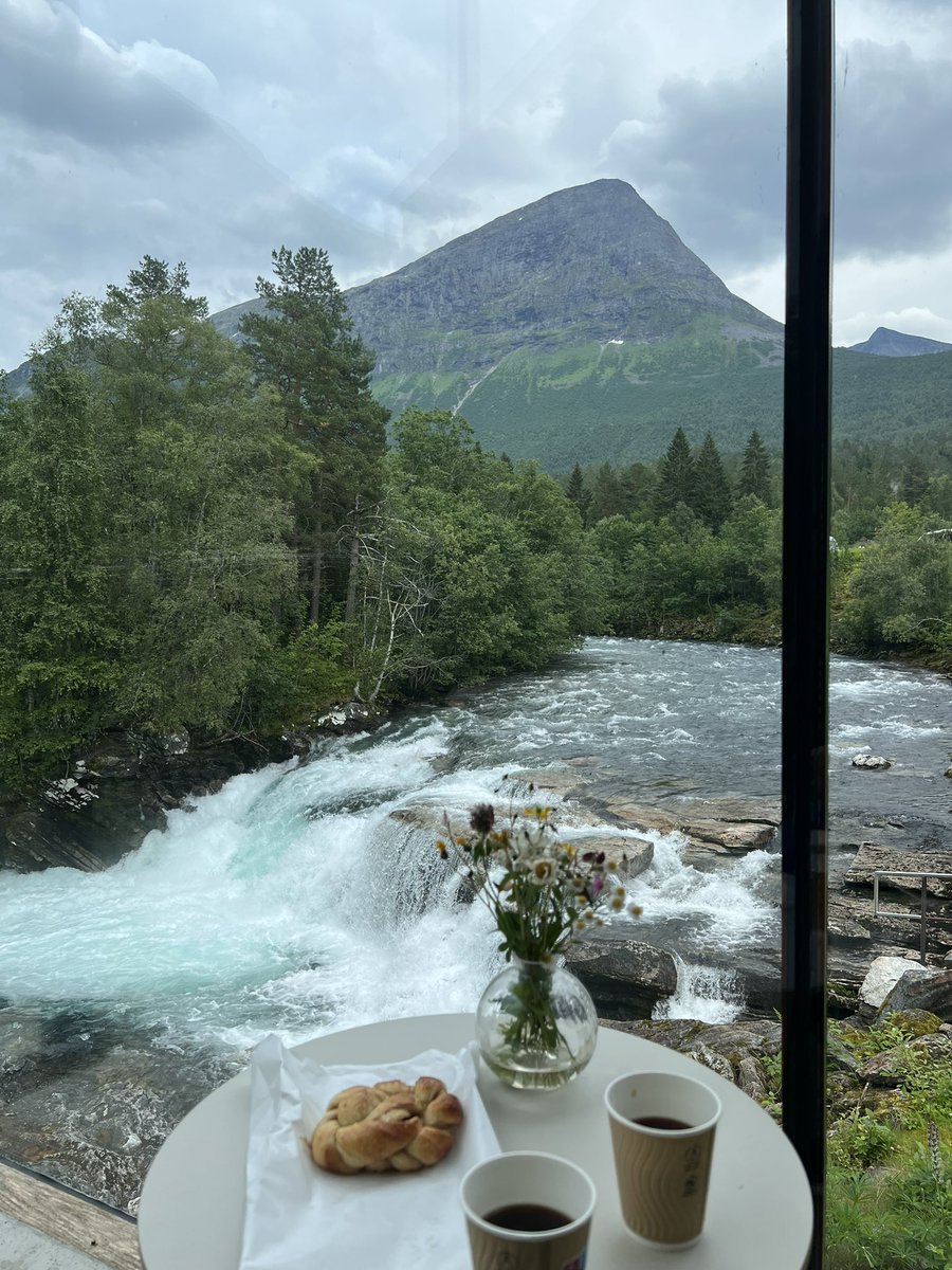 وختاما في فوس تلك البلده التي تشدك من لحظة دخولها أكبر من سترين وجميله ومحاطه بجبال رائعه و بحيره تشكلت من مياه الامطار وذوبان ثلوجها ⛄️ وحتما زرت الكافي الابرز لديهم وكان بنمط حديث 🎂🍰☕️