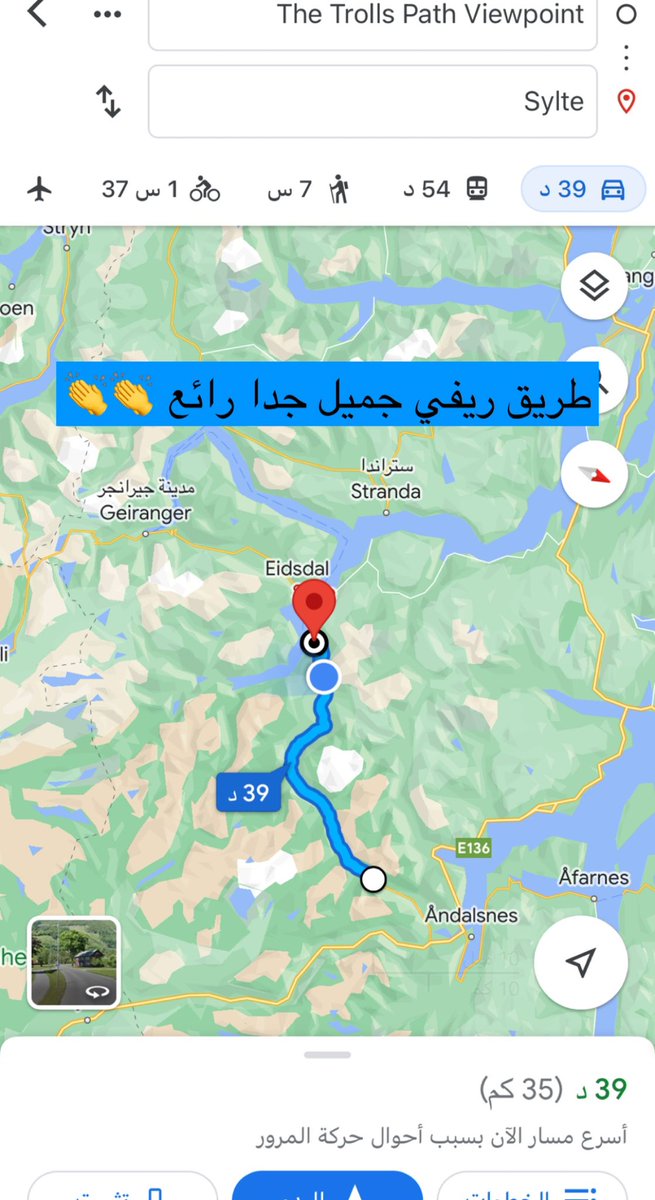 وعند وصولي في الموقع المرفق بالتغريده التي قبل هذي ، الى اعالي قمم الجبال الاسكندنافية في غرب النرويج 🇳🇴