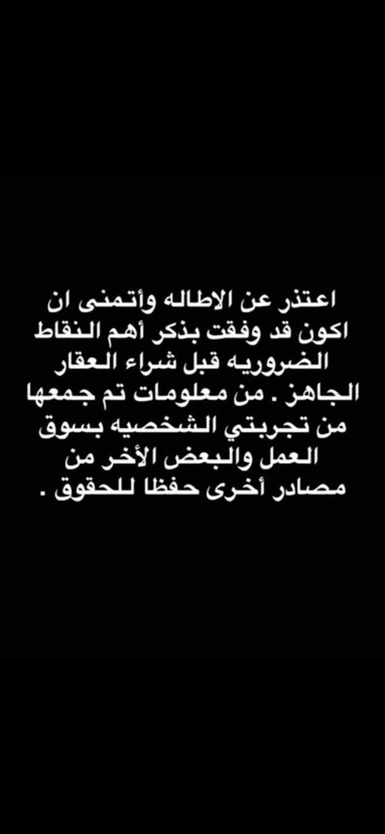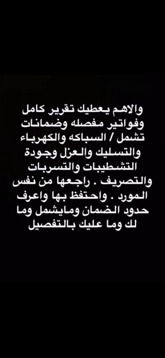 هام للمقبلين على شراء عقار سكني جاهز من قبل المطورين او تجار العقار خصوصا ان 80 % بيشتري عن طريق البنك و بيقسط 25سنه ونظرا لكثرت حالات الغش وانعدام الضمير الا من رحم ربي وماتشاهدونه من المقاطع خير دليل احفظ التغريده عندك واعرف حقك لاحد يغشك او يلعب عليك اكرر انا أنبه ولا اعمم 👇
