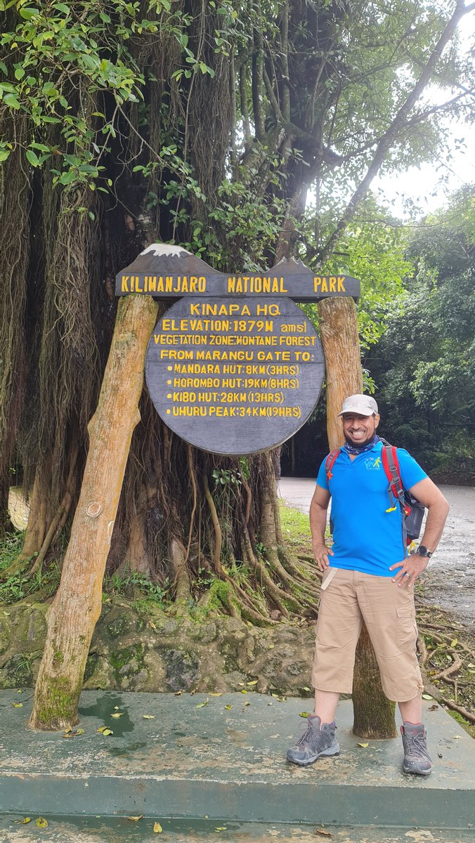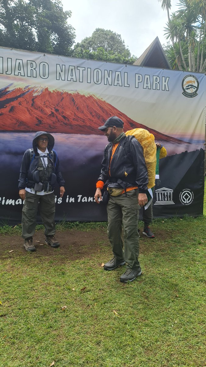 بعد الإفطار في #اليوم_الثاني توجهنا الى #بوابة_مارينغو للتسجيل وبداية المغامرة. في الحقيقة البوابة جزء من محمية كليمنجارو وعندها قابلنا الفريق اللوجستي من قادة مسار وطباخين وحمال . بعد التأكد من وزن الحقائب شرط ان تكون في حدود 15 كغم.
