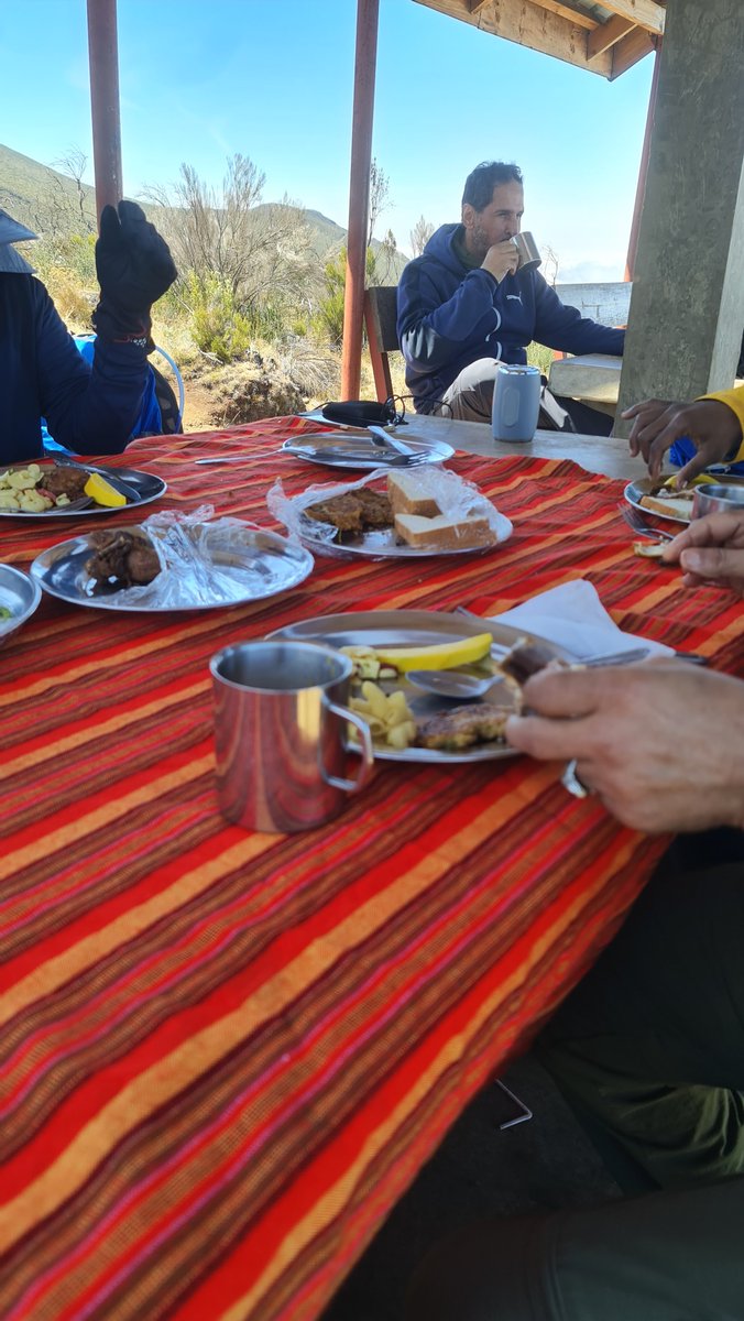بعد نوم عميق اصبحنا وفطرنا وكان البرنامج متأخر قليلا صعدنا فيه الى منطقة الصخورالبركانية ع ارتفاع 4050 م لكي نتعود على هذا الارتفاعات استعداد للمرحلة الأصعب قليلا #كيبو حيث قلة الاكسجين والشعور بمرض الارتفاعات. عدنا بعدها للمخيم