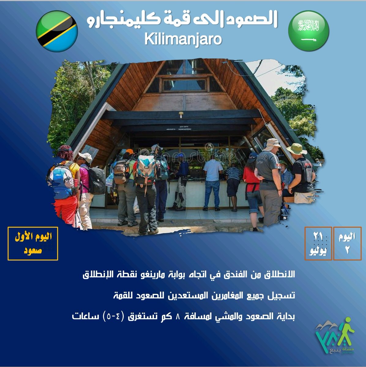 الصعود للقمة مرة في العمر وليس سباق ماراثوني وعليه خذ وقتك وتمهل في الصعود واستمتع بكل لحظة ومنظر وطبيعة ونفس لكي تصل للقمة وانت بصحة جيدة ومزاج هادئ وتستمتع بالانجاز والوقوف ع سقف افريقيا قمة كليمنجارو.