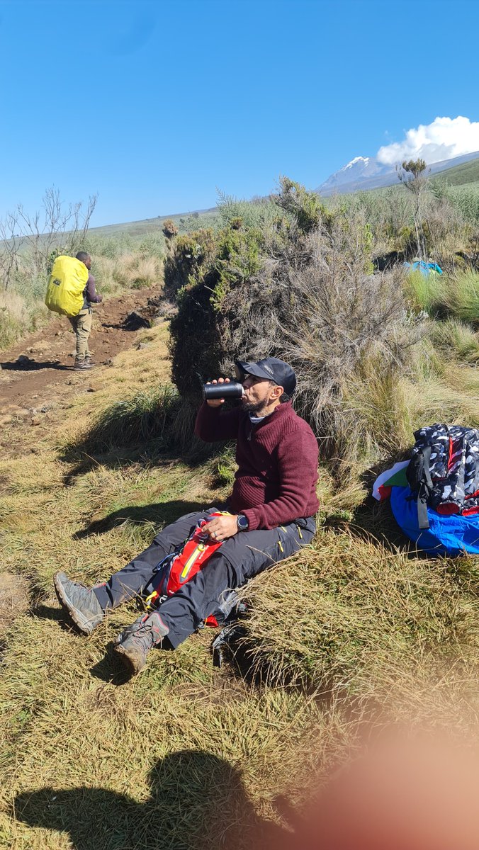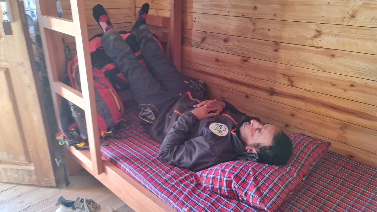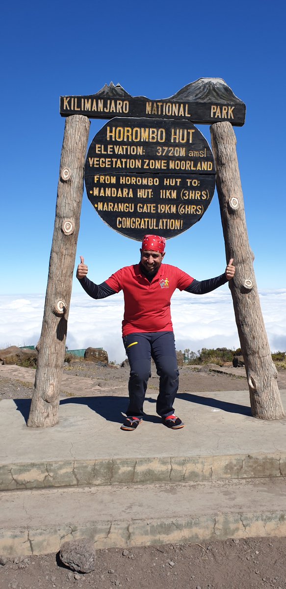 وصلنا مخيم ماندرا وقمنا من الصباح الباكر وبعد الافطار بدأنا الصعود والتوجه الى مخيم #هورومبو ع ارتفاع 3720م ويستعرق المشي قرابة 7 ساعات والمسافة 12 كم. هنا بدأنا نشعر بالإرهاق في الصعود واحتياجنا الى فترات استراحة أكثر. ولكن بالعزيمة وصلنا.
