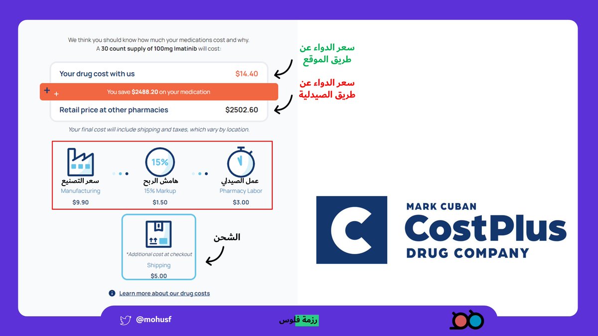 بالضبط، هذا اللي صاير مع شركة @costplusdrugs ، الشفافية هي شعار الشركة بحيث يجزءون لك سعر الدواء من المصنع الى باب بيتك.