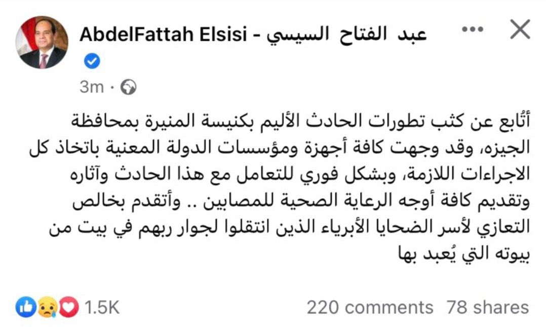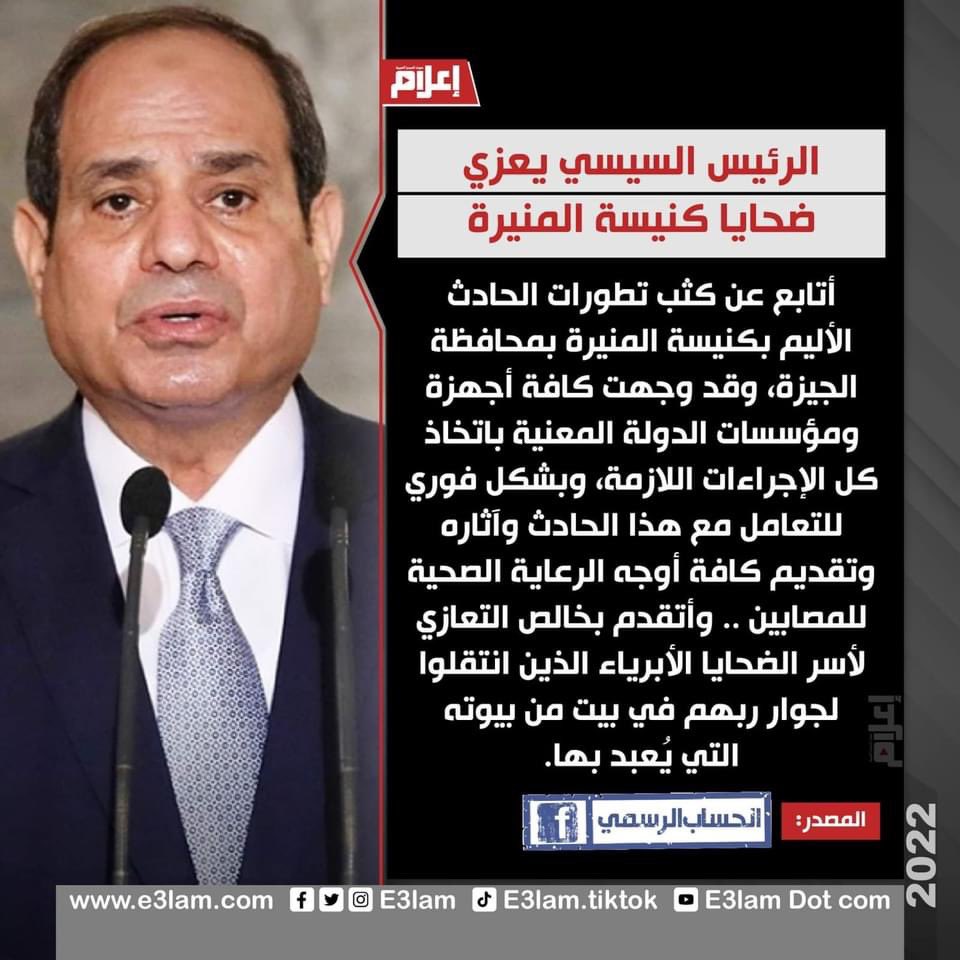 نشب حريق صباح اليوم الأحد، في كنيسة أبو سيفين بمنطقة إمبابة، وجاري متابعة الموقف بناء على تعليمات الرئيس، كما أعلنت وزارة الصحة نقل 55 حالة للمستشفيات وجاري حصر الوفيات.