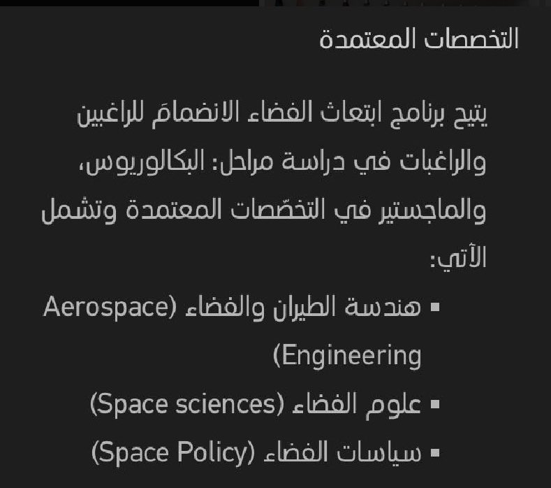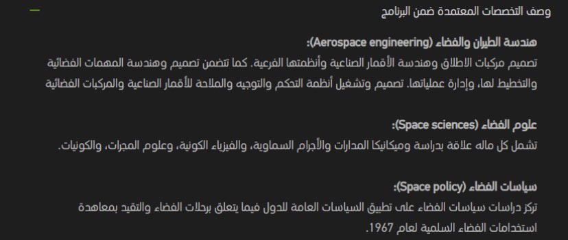 2- الحصول على قبول مباشر غير مشروط في تخصصات علوم الفضاء من الجامعات المحددة.