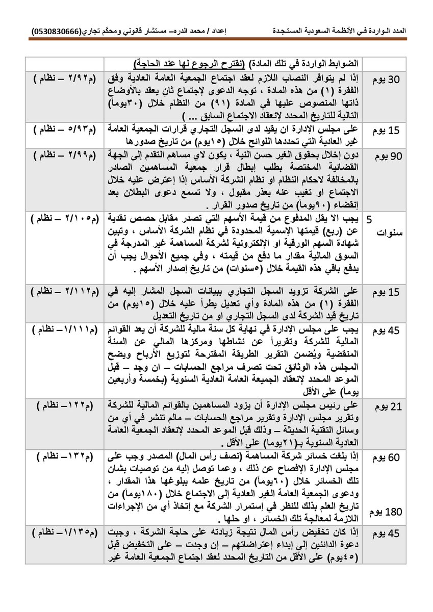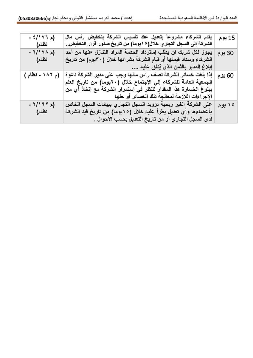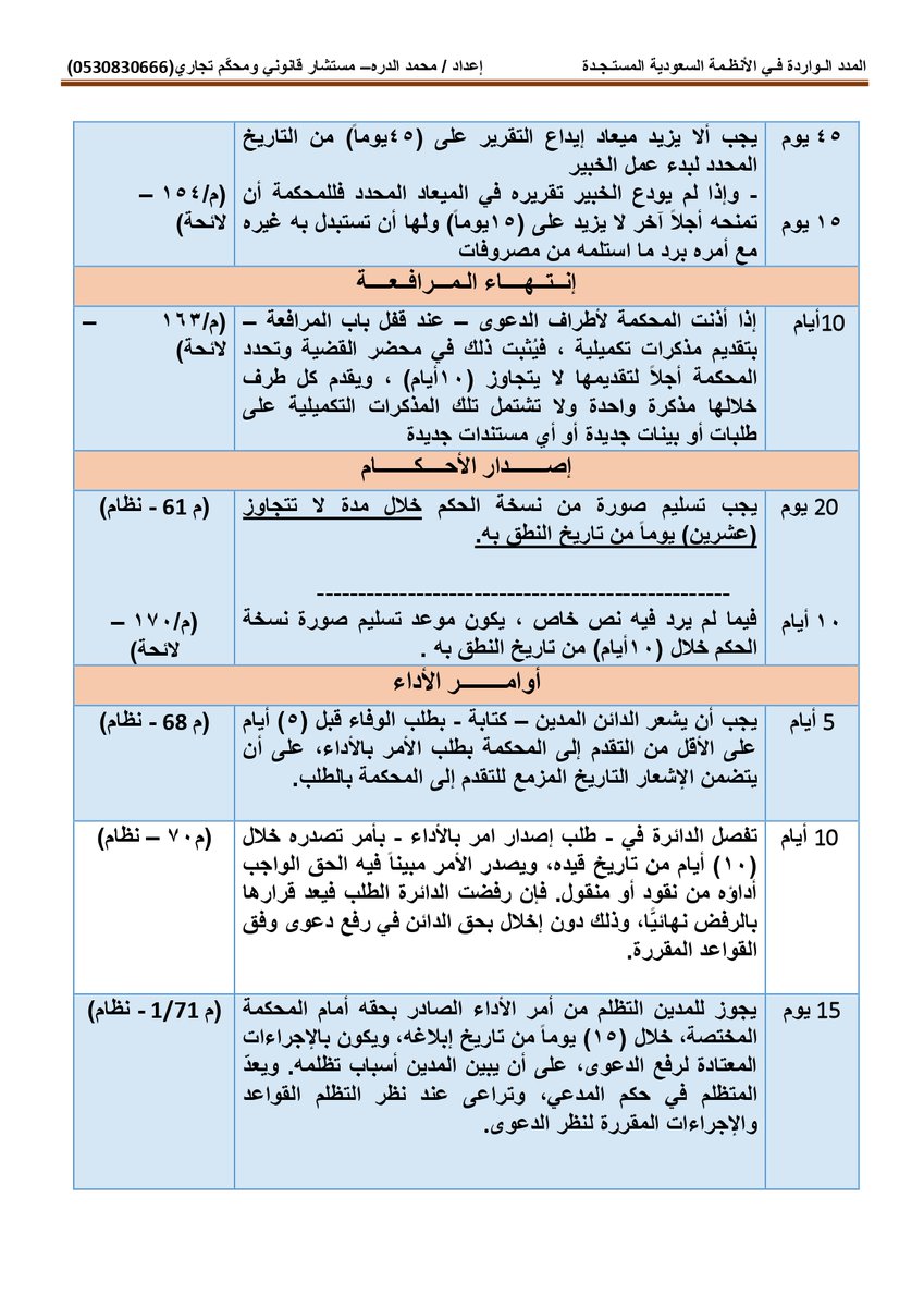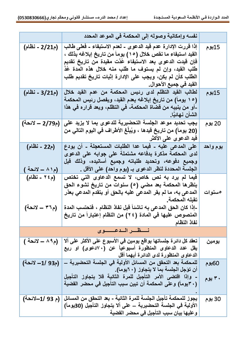 أولاً : المدد النظامية الواردة بـ #نظام_المحاكم_التجارية