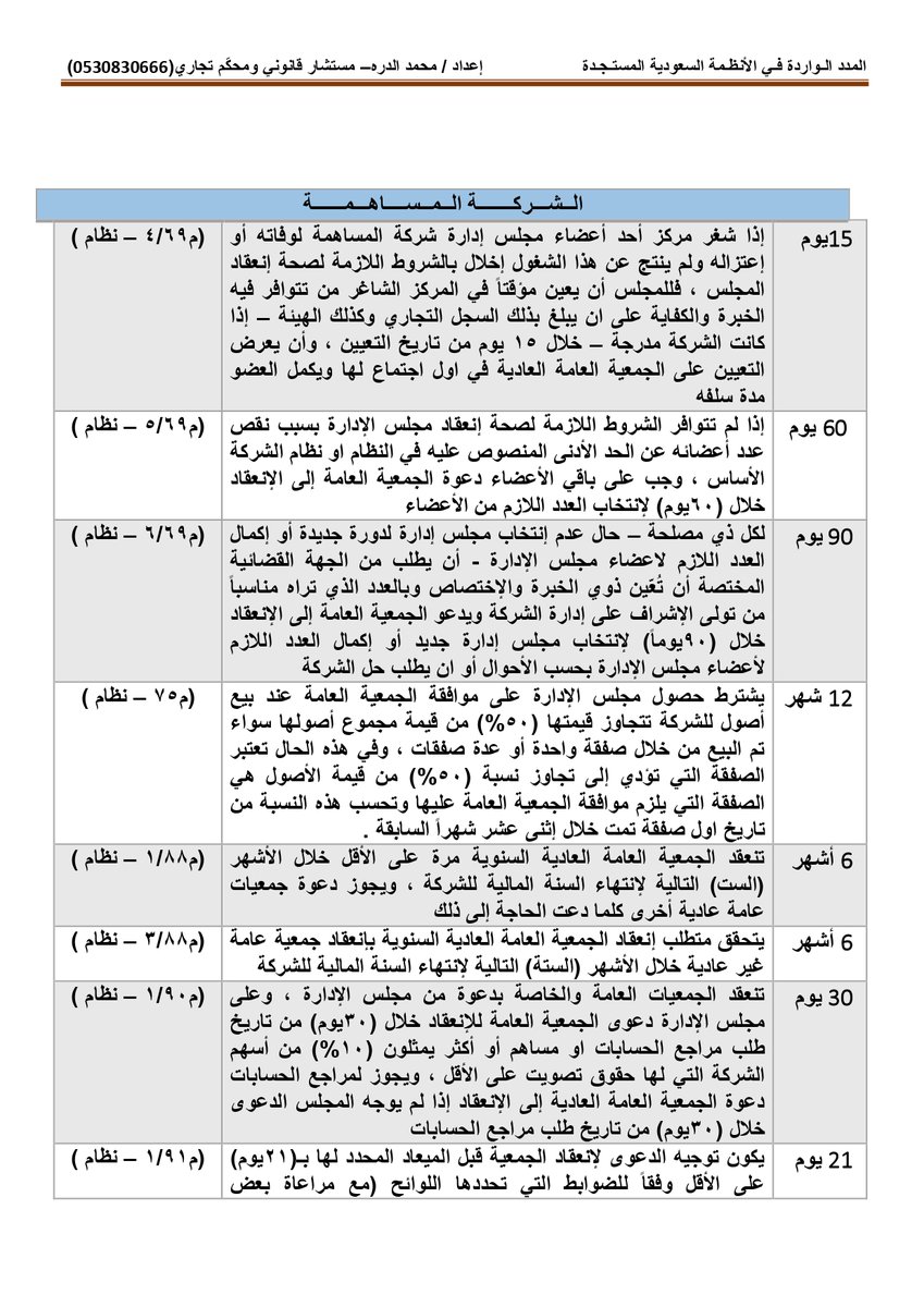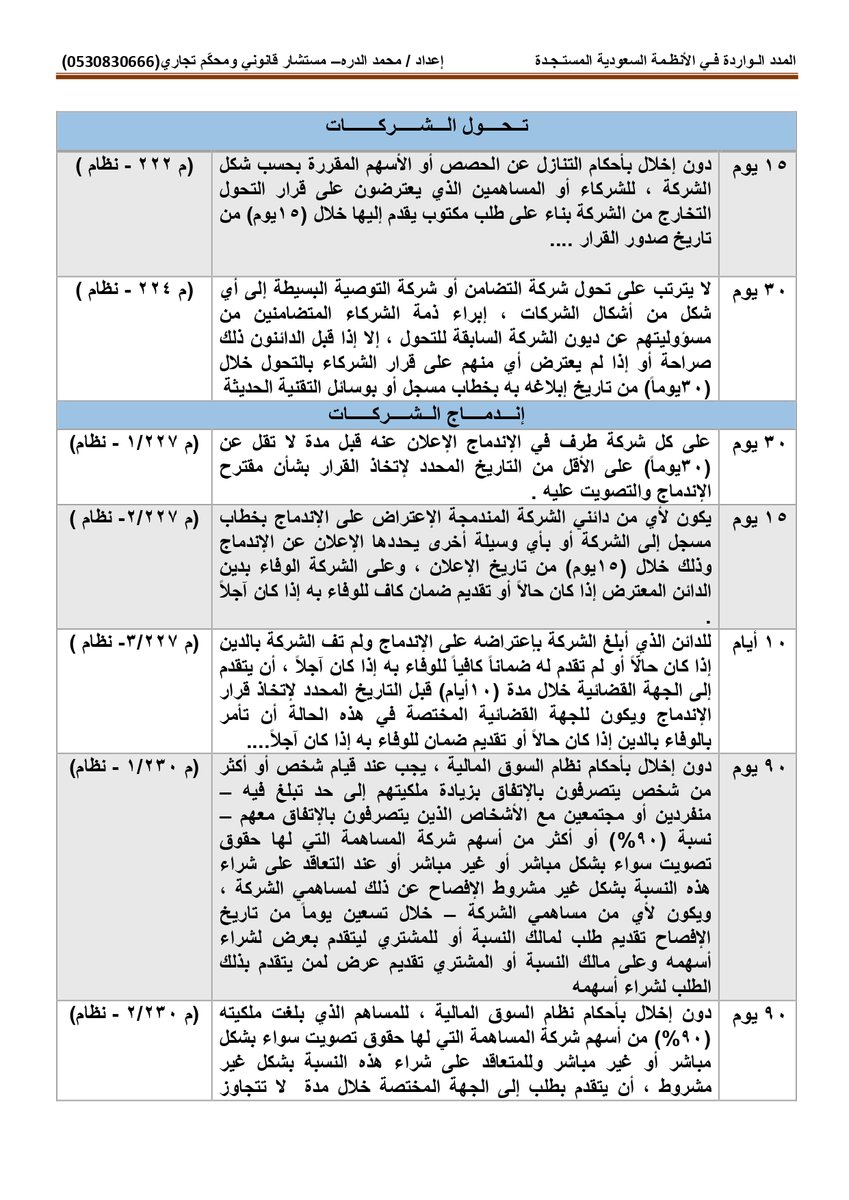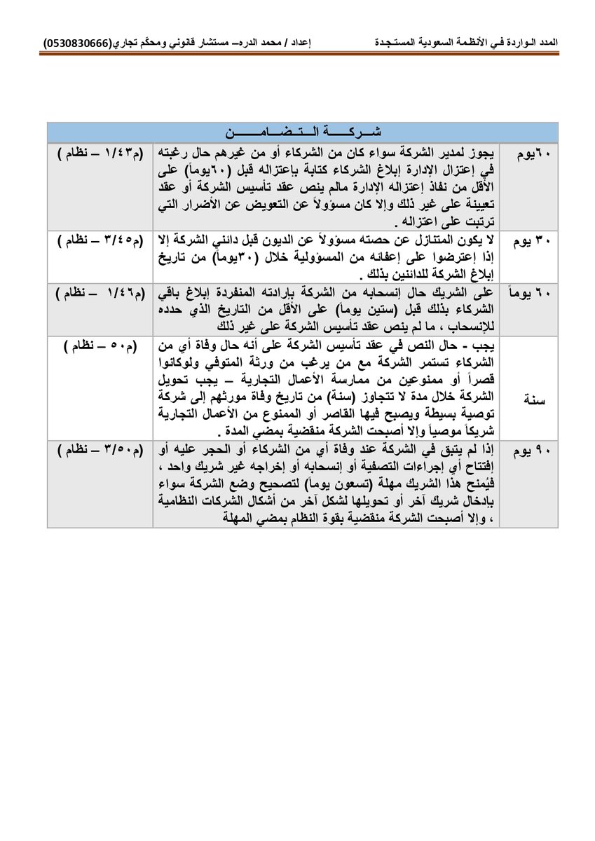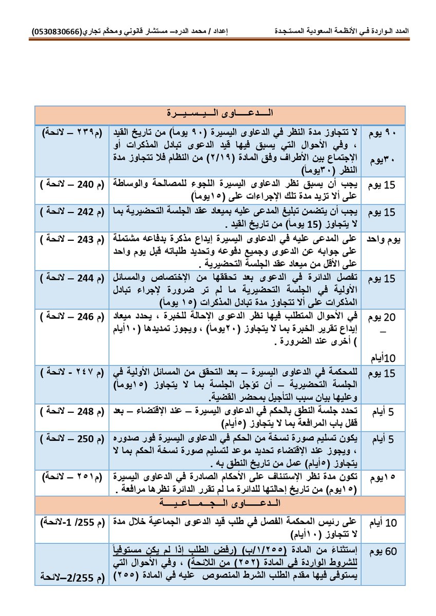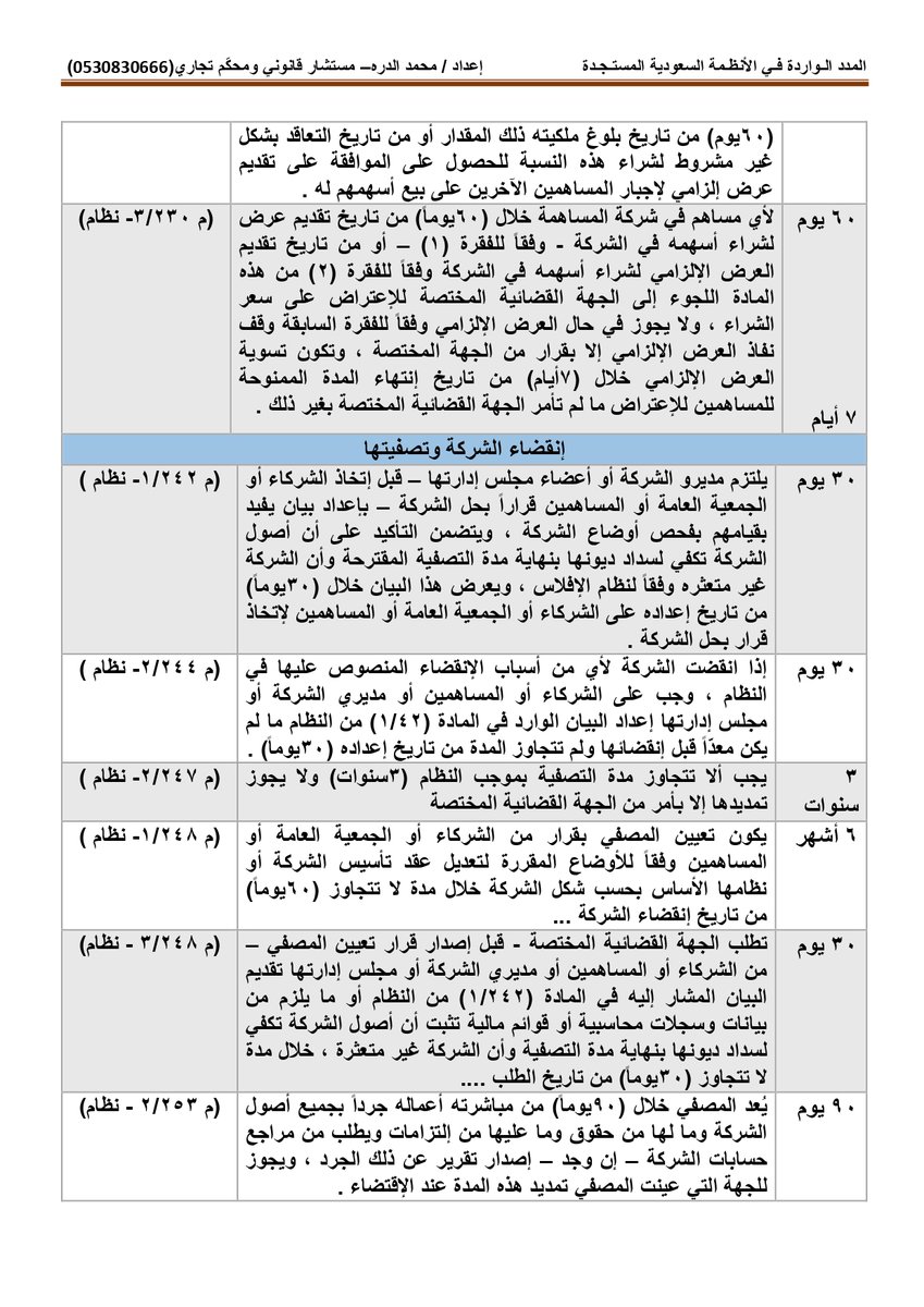 أولاً : المدد النظامية الواردة بـ #نظام_المحاكم_التجارية