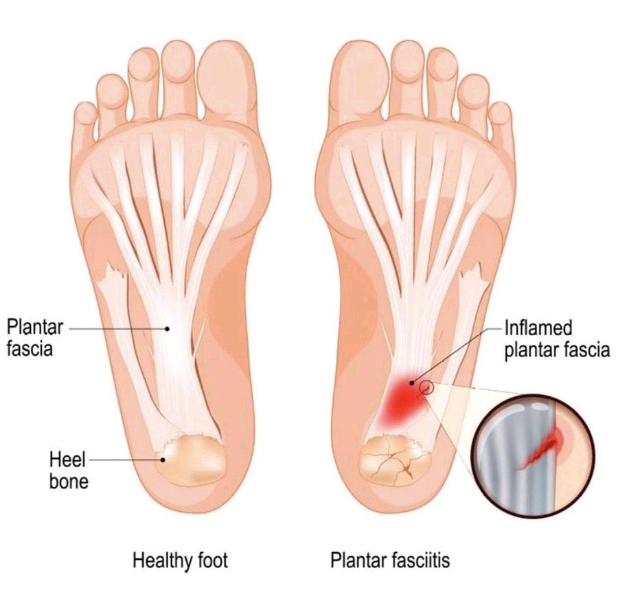 يعتبر التهاب اللفافة الأخمصية من أكثر الأسباب شيوعا للألم أسفل الكعب، وتكون على شكل رابط سميك يشبه الشبكة يربط الكعب بالقدم كما بالصورة أعلاه