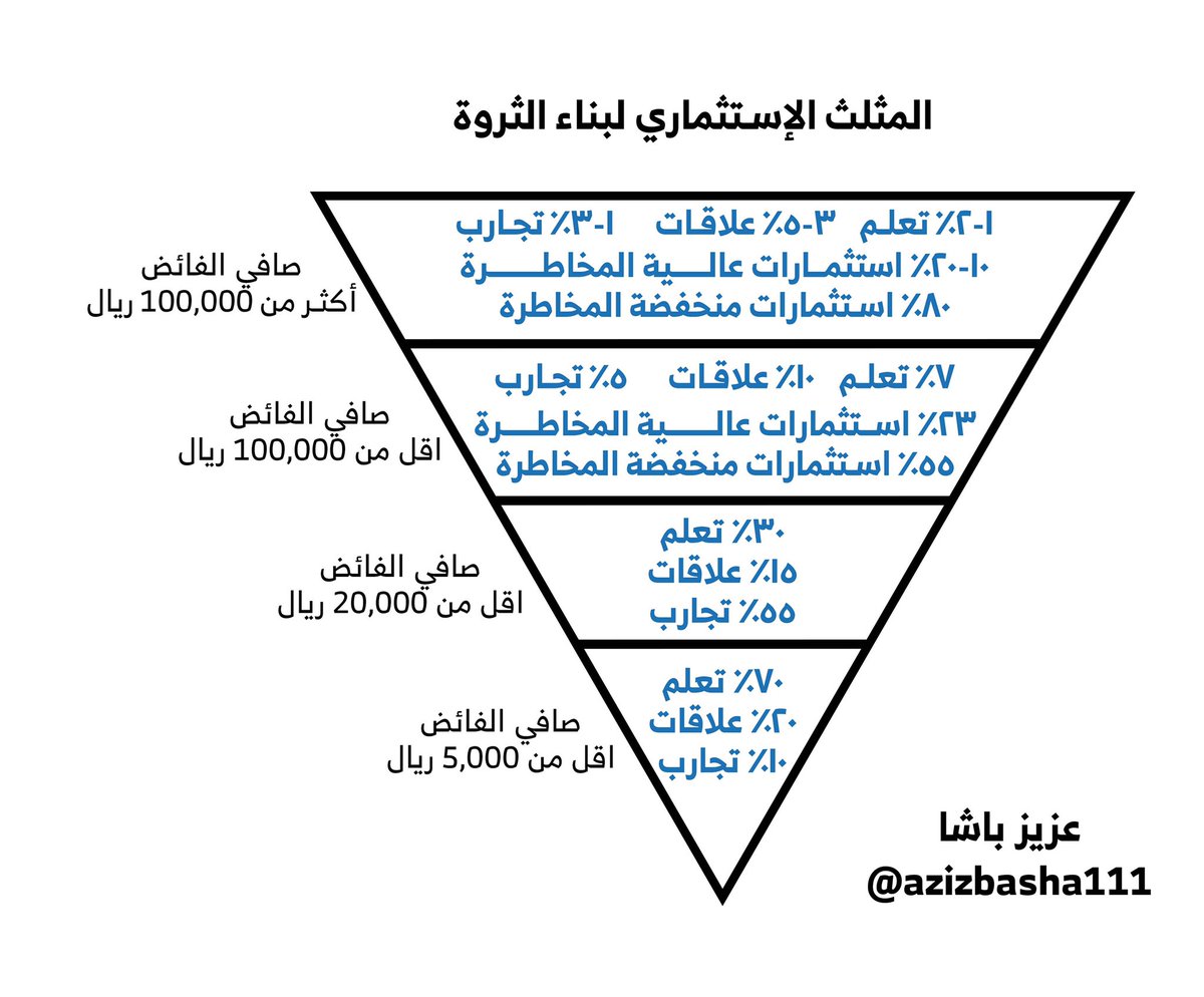 مثال لو يصفالك من راتبك ٢٠٠٠ ريال بعد خصم المصاريف وطبقت النسب اللي في المثلث يصير