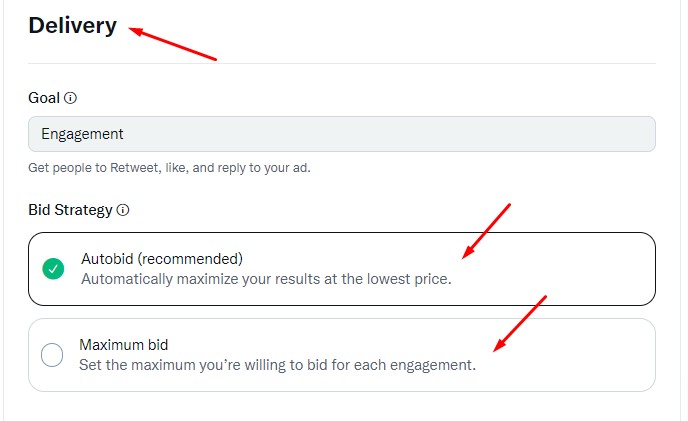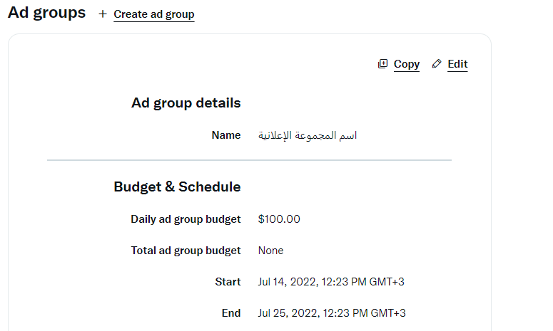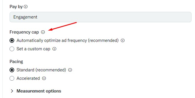 يمكنك اختيار الخيار الأول والذي يعني بزيادة أداء مجموعتك الإعلانية إلى الحد الأقصى من خلال السماح لتويتر بتحديد عدد مرات عرض إعلاناتك. يختلف تكرار المجموعة الإعلانية حسب الهدف والإعدادات. ولكن على أقصى تقدير، فإن الهدف هو عدم عرض أكثر من 7 إعلانات لكل مستخدم في الأسبوع.