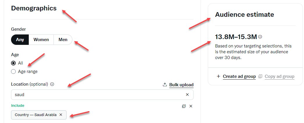 أيصًا يمكنك الوصول إلى الأشخاص الذين لديهم اهتمامات مماثلة لمتابعي الحساب (Follower look-alikes). يعتمد التشابه على أشياء مثل التغريدات وإعادة التغريد والنقرات وغيرها