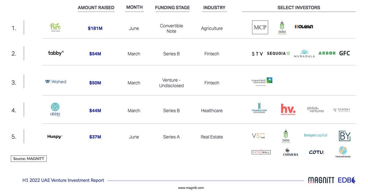 من تقرير @MAGNITT عن نشاط رأس المال الجريء في الإمارات خلال النصف الأول 2022.