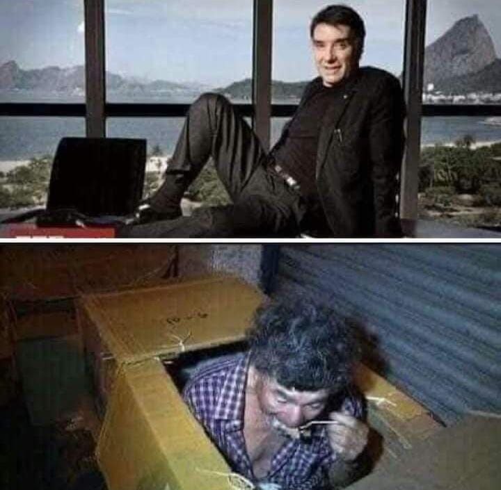 فقد عقله وأصيب بالجنون، وأصبح مشردًا في الشوارع ، يسكن علبة كرتون،