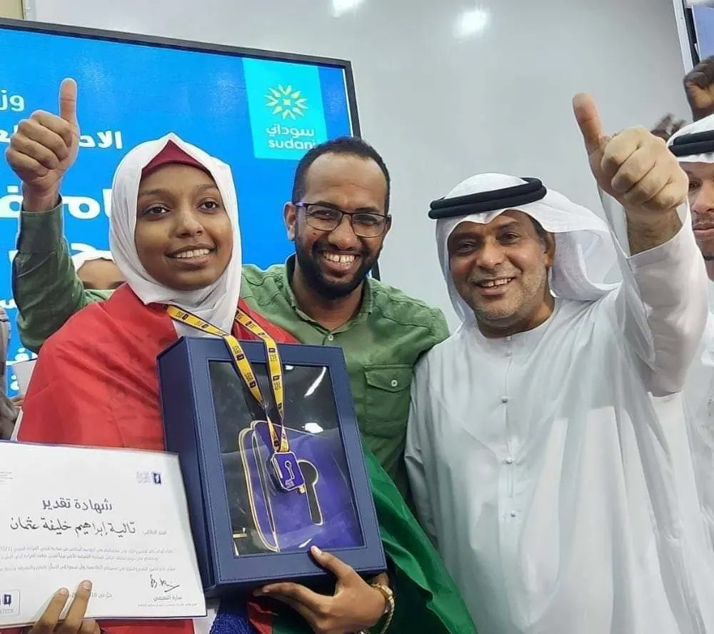 وقالت الطالبة الفائزة تالية، التي تدرس بالمستوى الثالث الثانوي بطلة التحدي وممثلة السودان على مستوى التنافس العربي بدولة الإمارات، بأنها فخورة لكونها بطلة السودان.