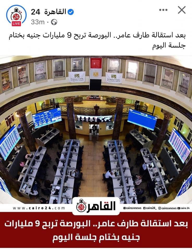 البورصة تربح ٩ مليار جنيه بعد استقالة طارق عامر.