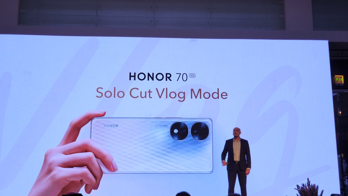توجد بكاميرا هاتف #HONOR70 وضع تصوير SOLO CUT اللي تسمح لك بتصوير فيديو مع ميزة التعقب التلقائي للشخص وذاكرة ذكية للتتبع.