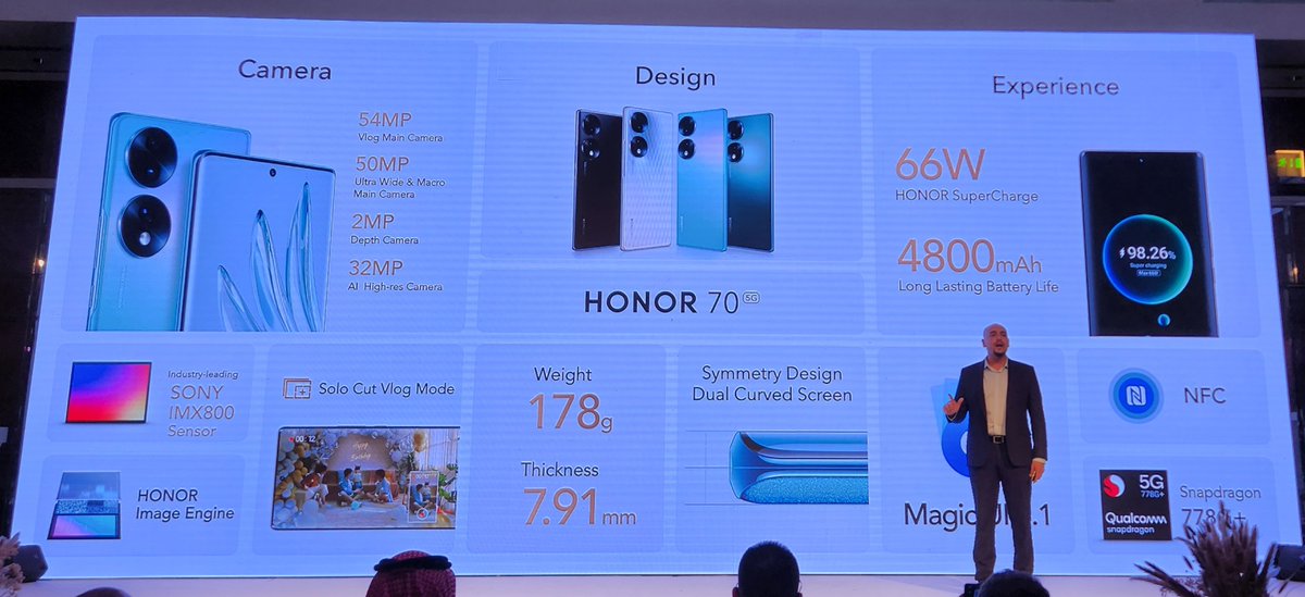 باعلان السيد Zhao الرئيس التنفيذي لشركة هونر في الشرق الاوسط وافريقيا إطلاق هاتف #HONOR70 بشكل رسمي 📸📱