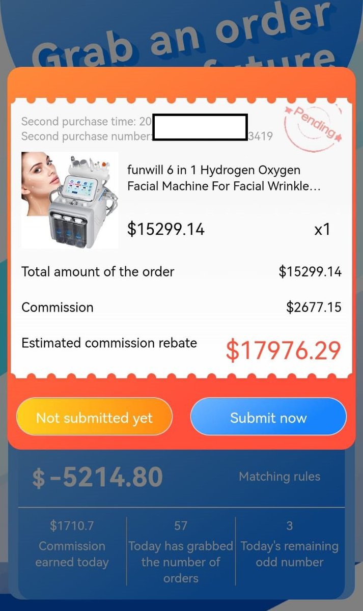 4-3حسب ما مطلوب منك 60 طلب لازم تعملهم، ومع نهاية آخر 10 طلبات تكون أسعارها غاليه كثير، تحاول تنسحب وتاخذ المبالغ الخاصة فيك مع العمولة الي حصلتها، وهنا يتم الاحتيال عليك، مثلاً تشتغل بملغ 1000 ريال، المبلغ هذا ثابت وراح تحصل 200 ريال فوائد.