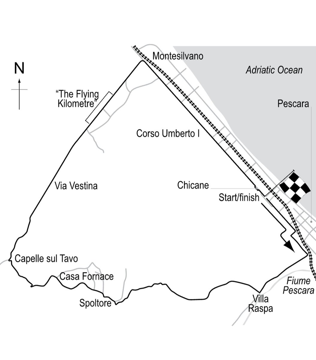 كانت تقع على حافة المدينة و صعودًا إلى الجبال عبر قريتي مونتاني و سبولتور و نزولاً إلى بلدة كابيلي سول تافو إلى خط مستقيم و سريع يمتد من الزاويه اليمنى إلى البحر الادرياتيكي حتى يلتقي بمدينة مونتيسيلفانو ثم يمتد جنوبًا عبر طريق الساحل عائدًا إلى بيسكارا.