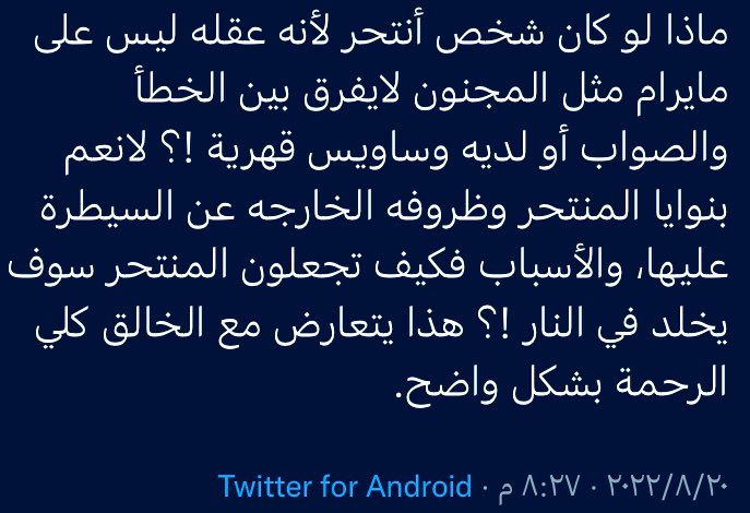 مسلم؟ الانتحار فكرة غير مطروحة، استوعب هذا جيدا.