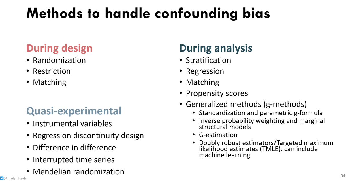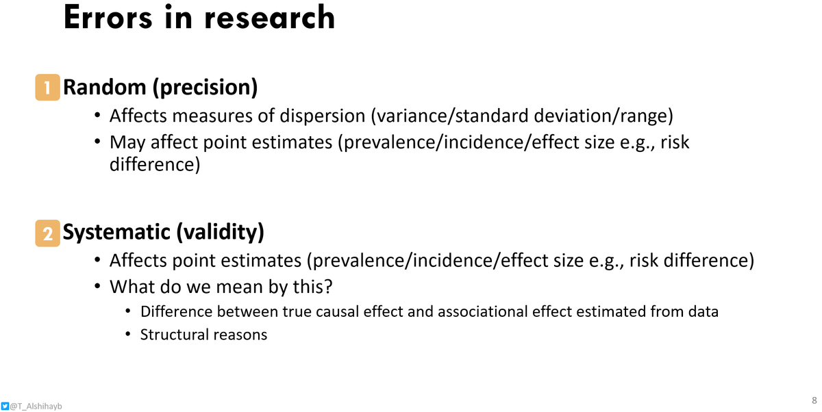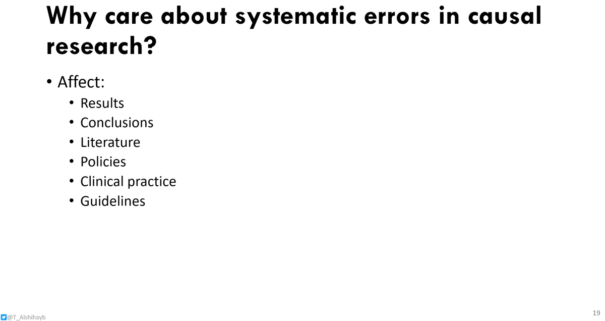 سمعت عن الأخطاء المنهجية في أبحاث السببية وودك تعرف وش هي أو تبي تعرف وش ممكن يفسر نتائج الدراسات. في هالمحاضرة أشرحها بطريقة مختلفة تعتمد على محاكاة للبيانات عشان تصير أقرب للفهم. أبتكلم عنها في هالتغريدات.