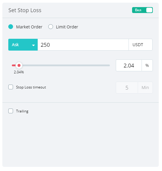 ٣- وقف خسارة 250 وهنا لو صعد الايثيريوم ل 250 قبل الوصول ل 220 سيشتري البوت ب 250