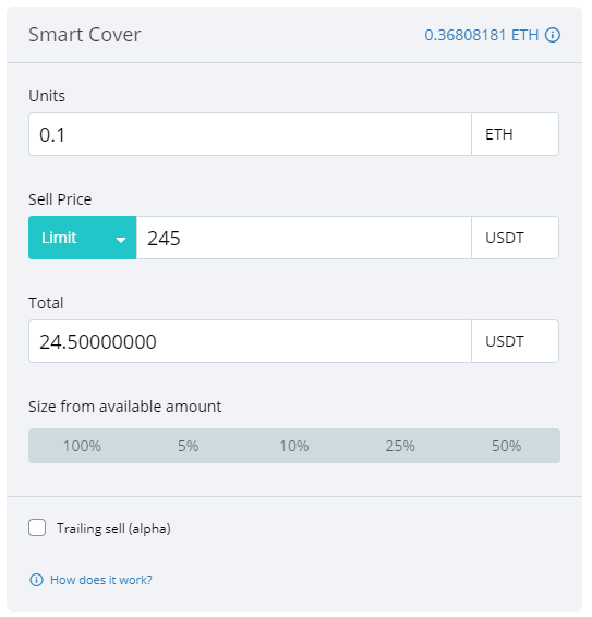 لكن بدأ الايثيريوم ينخفض ل 245 هنا اعدت التحليل وتوقعت ان الايثيريوم سينخفض لل 220 ولكنك لا تريد بيع الايثيريوم والتخلص منه نهائيا لانك متأكد انه سيصعد بعد هذا التصحيح، ولا تريد دخول صفقات شورت، ما الحل بالنسبة لك بدون شبهه شرعية؟ الان جاء دور Smart Cover: sell & repurchase