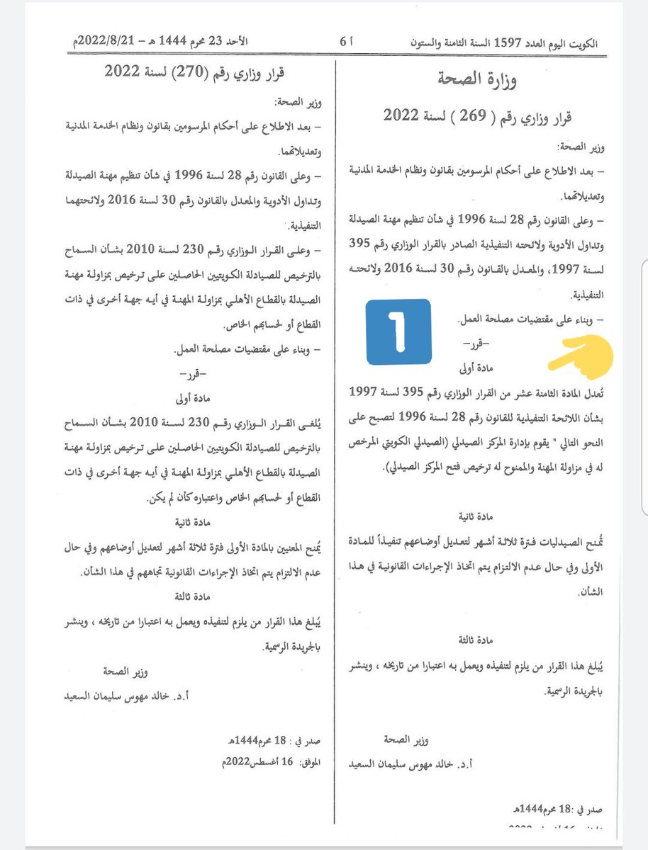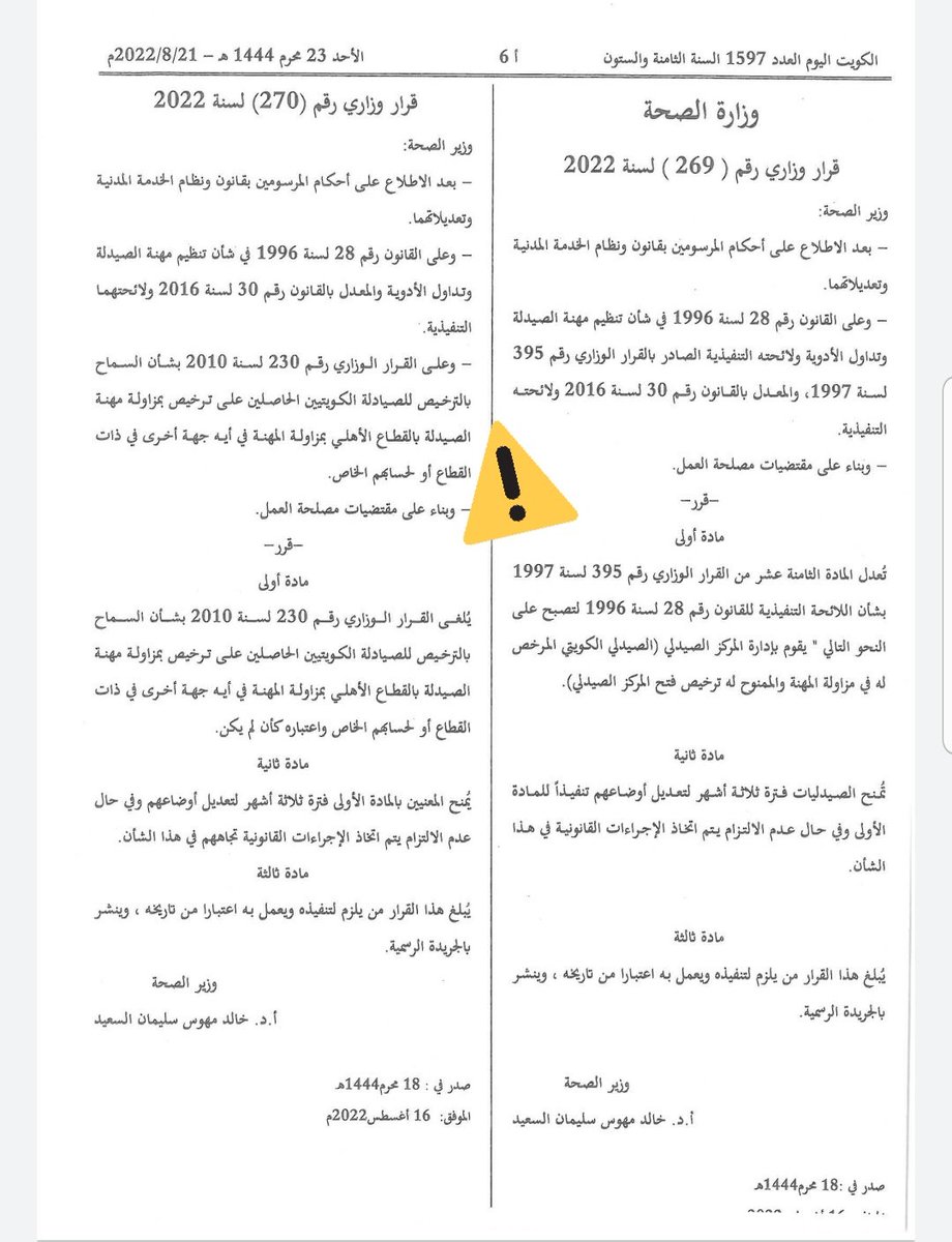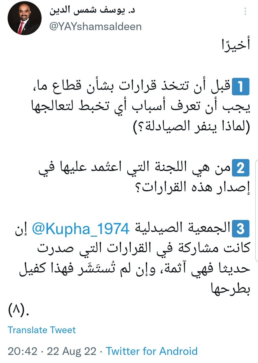 ⚠️كجمعية صيدلية، هل استشاروكم @Kupha_1974 قبل إصدار القرار الأول الذي تم تعديله؟(٩)