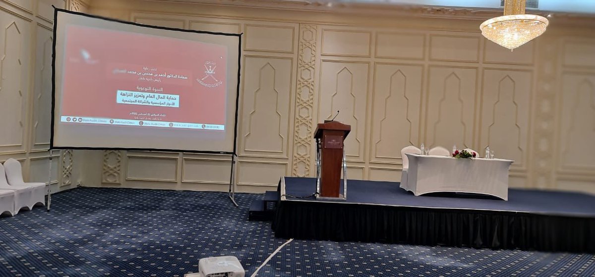 #أثير| بدء الندوة التوعوية عن حماية المال العام وتعزيز النزاهة التي ينظمها جهاز الرقابة المالية والإدارية للدولة @StateAudit_Oman ضمن برنامجه التوعوي #وعي_وشراكة