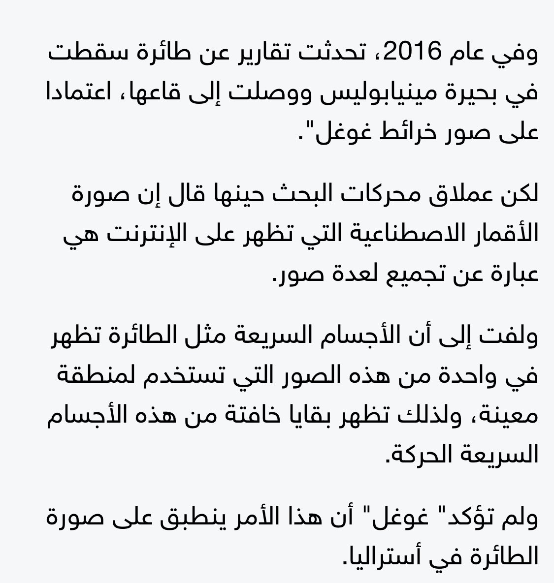 صورة محيرة تضارب بها الآراء لطائرة بوينغ التقطت من قبل خرائط قوقل تحلق في علو منخفض،ليست على أي مسارات طيران منتظمة ويبدو أنها سقطت عند منطقة الغابات المطيرة في أستراليا صرح مسؤولو الطيران أنه لاتوجد طائرات مفقودة وتوقعوا وجود عطل في قمر الصناعي لقوقل التي لم تتفاعل مع الموضوع.