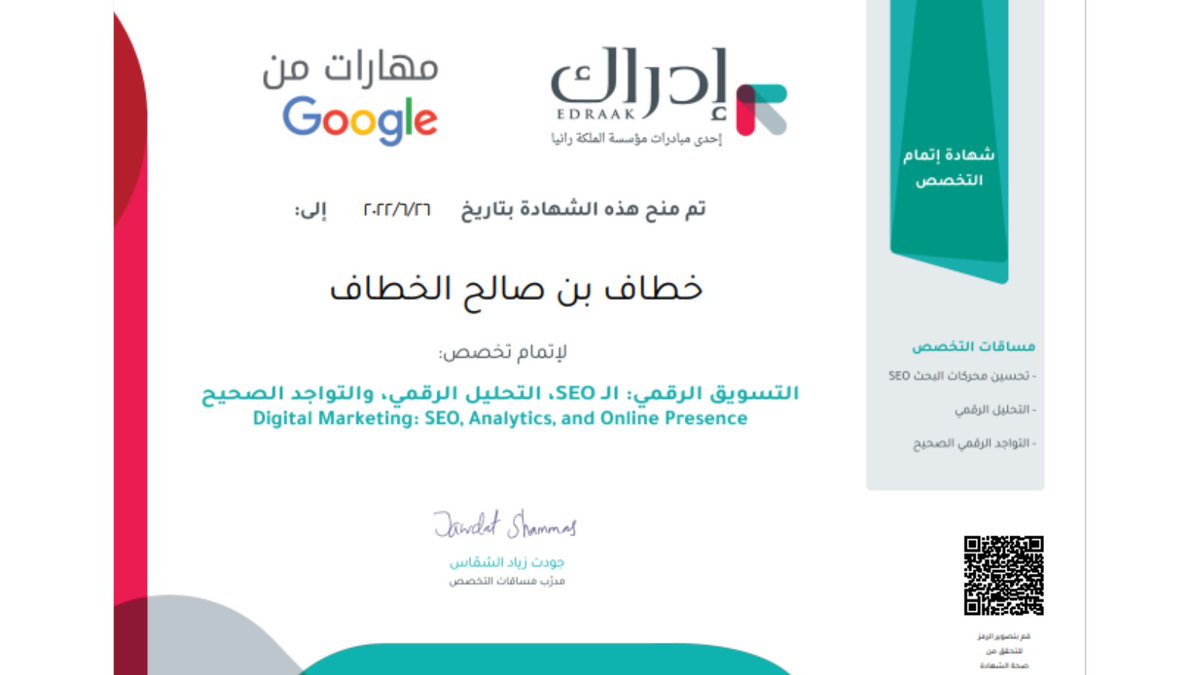 @JihadAbuMustafa @Hasansamarin @binsoliman7 @MajeedAlotaibi بعد ما تتابع القنوات السابقة بفترة وتطبق معهم بعدها ابيك تقدم على منصة ادراك وتاخذ الدورة المجانية وترى فيها شهادة معتمدة من قوقل