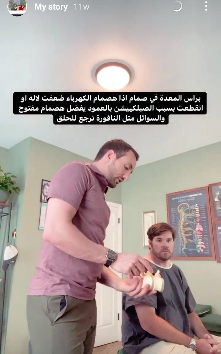 برأس المعدة يوجد صمام يصل له كهرباء اذا ضعفت او انقطعت عنه الكهرباء بسبب subluxation صدمات بالعمود يبقى الصمام مفتوح فالسوائل ترجع مثل النافورة معنى صبليشكن شرحه الدكتور محمد هنا رابط الفيديو 👇
