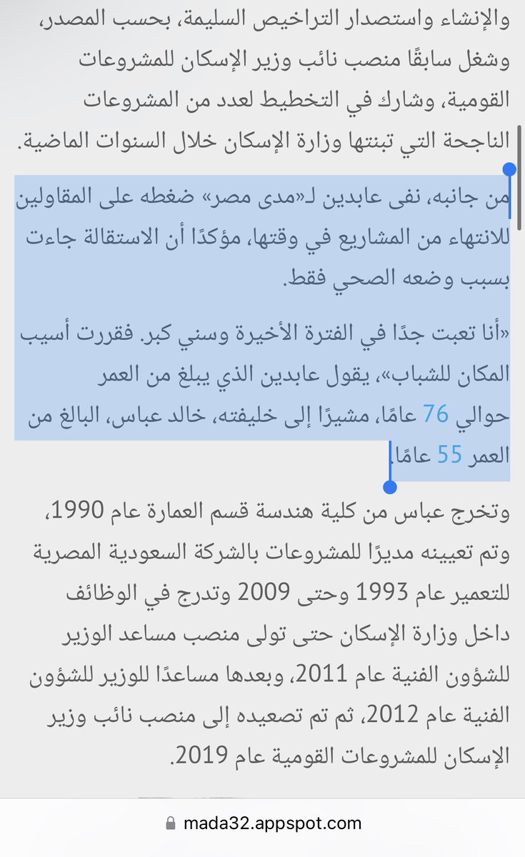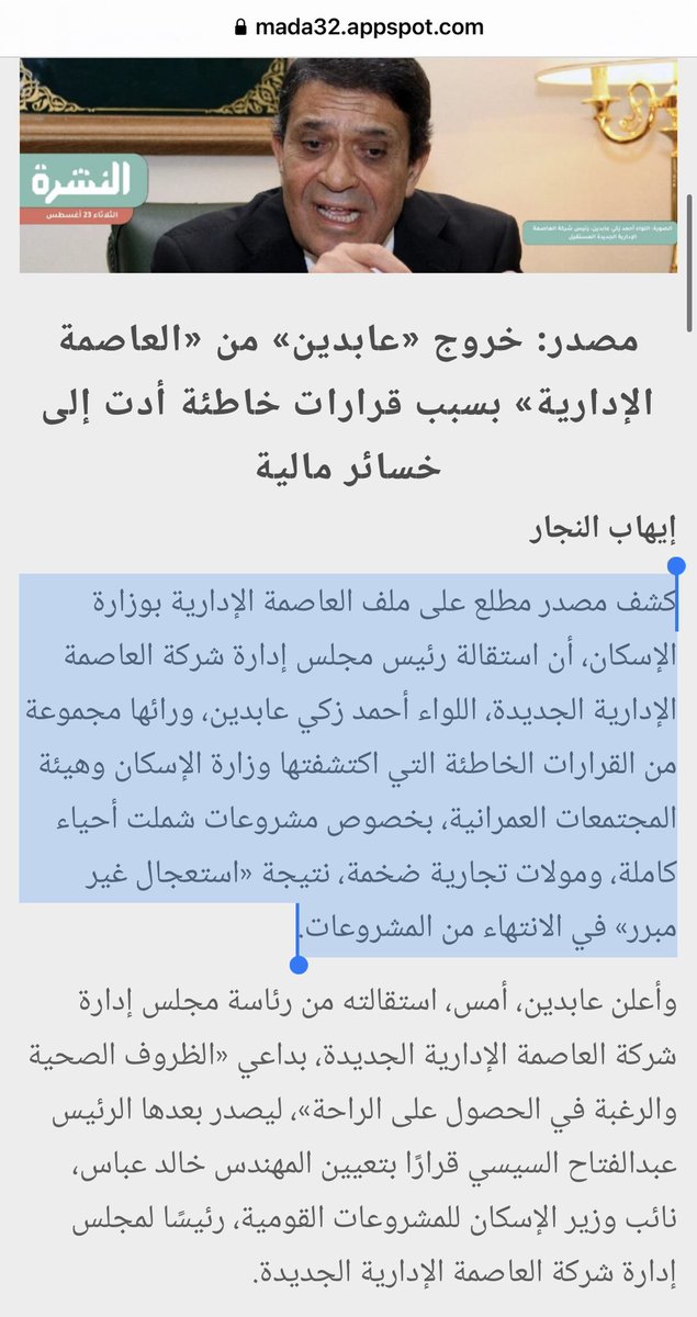 وهذا تقرير مدى مصر عن استقالة اللواء أحمد زكي عابدين.
