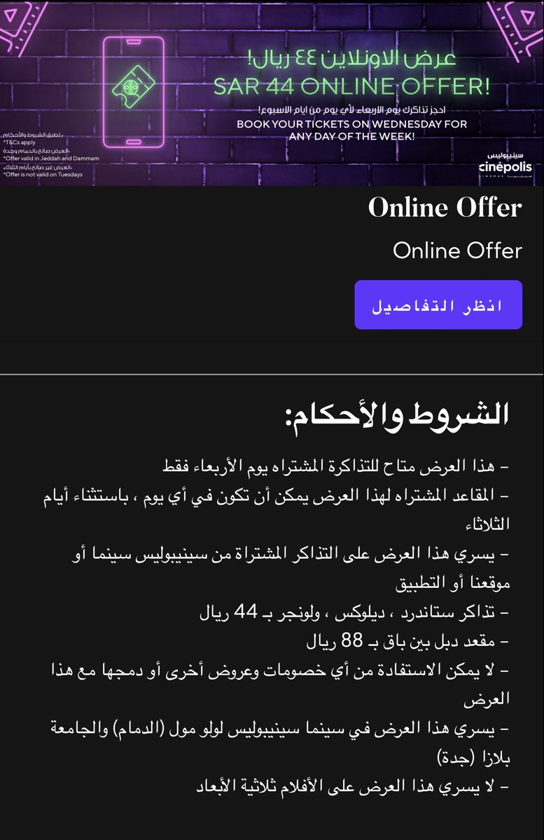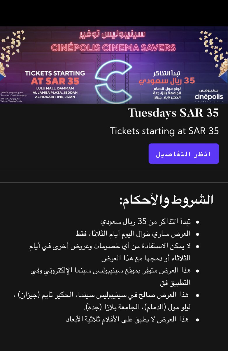 عندهم عرض الثلاثاء التذاكر ب ٣٥ ريال