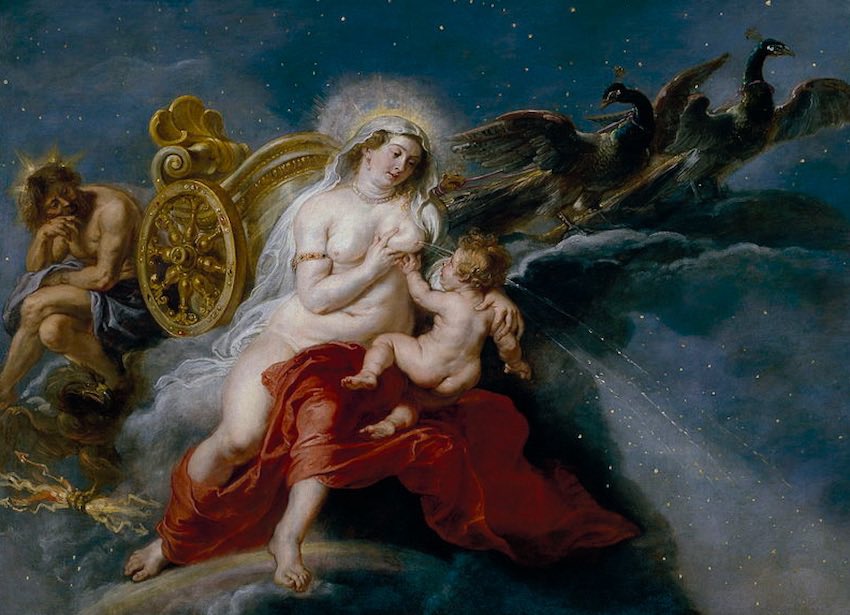 تا بچه رو به بغل میگیره تا بهش شیر بده، این بچه نوزاد چنان با قدرت سینه هرا رو میگیره و گاز میگیره که شیرش تا آسمانها پرتاب میشه و کهکشان «راه شیری» رو میسازه 😳١٨