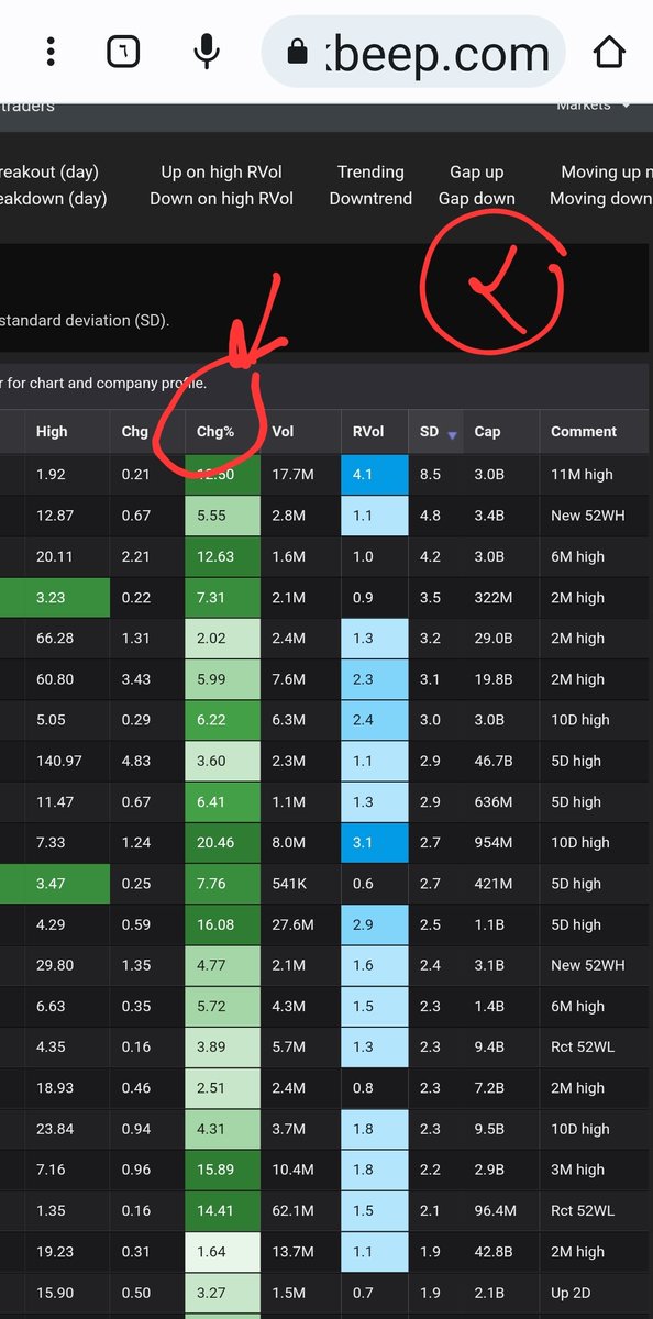 5- أعلى حسب الحجم النسبي ( مهم ) RVOL