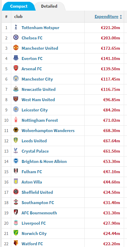 📊 صرف توتنهام آخر 4 مواسم على خطوط الفريق: