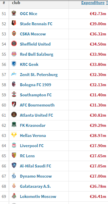 📊 صرف ليفربول آخر 4 مواسم على خطوط الفريق: