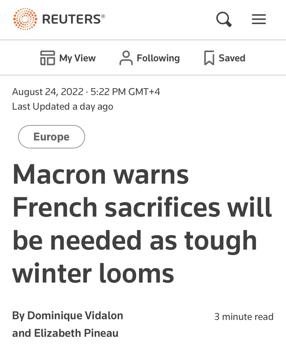 لكنه أنكر ذلك بالطبع و أكد أنه ملتزم بالتصدير لكنه غير قادر على ذلك.. مع احتمال أن ينقطع التصدير تماما بالأشهر القادمة.. وبالرغم من الألم الذي قد تشعر به روسيا لكنها اقتصاديا في وضع جيد جدا .. بينما الألم الأكبر سيكون على أوروبا التي ستعاني وهي تحاول حماية شعبها من ارتفاع الاسعار