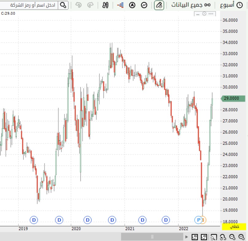 قرار حكيم الخروج من السهم عند منطقة المقاومة وعدم المراهنة على الاختراق ..ومن ثم العودة للسهم مرة جديدة فإما تراجع ووصول لدعم 26 أو الاختراق واختبار منطقة الاختراق من جديد عند 29.65..يتبع