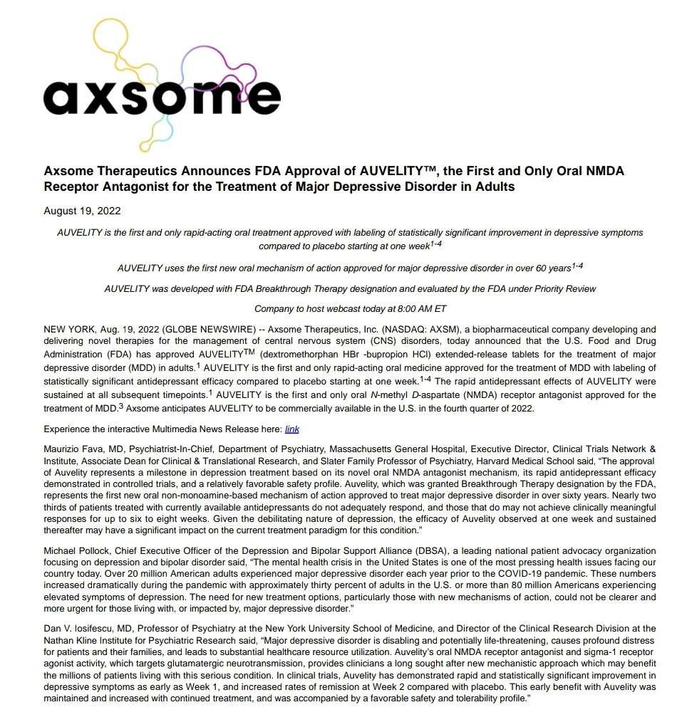 AUVELITY (dextromethorphan HBr -bupropion HCl)أوفيلاتي لعلاج الاكتئاب