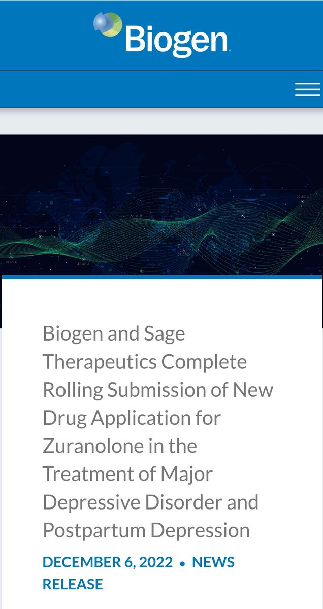 شركة بايوجين @biogen وشركة @SageBiotech أكملا تسليم هيئة الغذاء والدواء @US_FDA البيانات اللازمة لاعتماد الدواء التجريبي