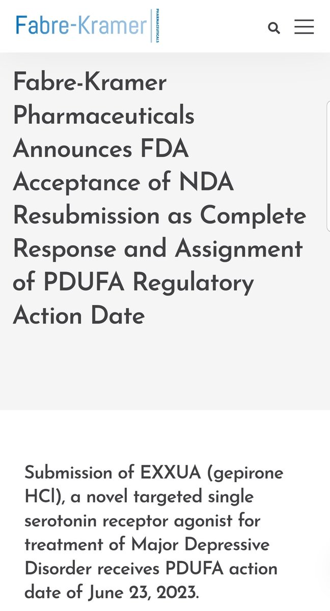 شركة فابري كرامير الدوائية أكملت تسليم هيئة الغذاء والدواء @US_FDA طلب اعتماد الدواء التجريبي