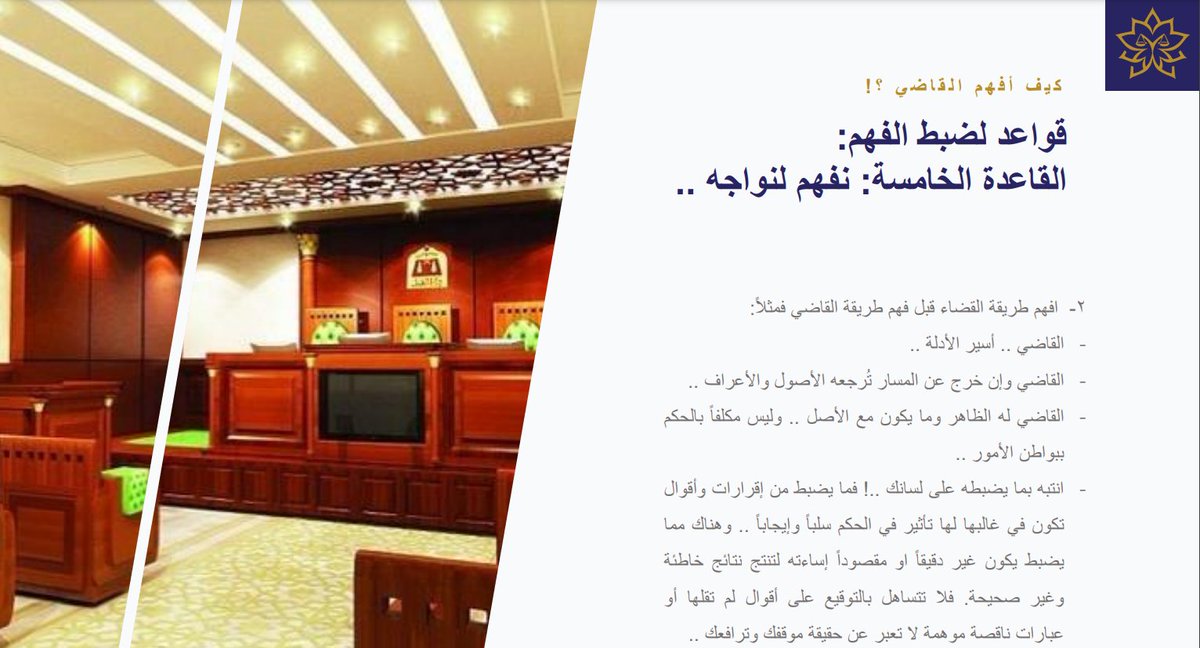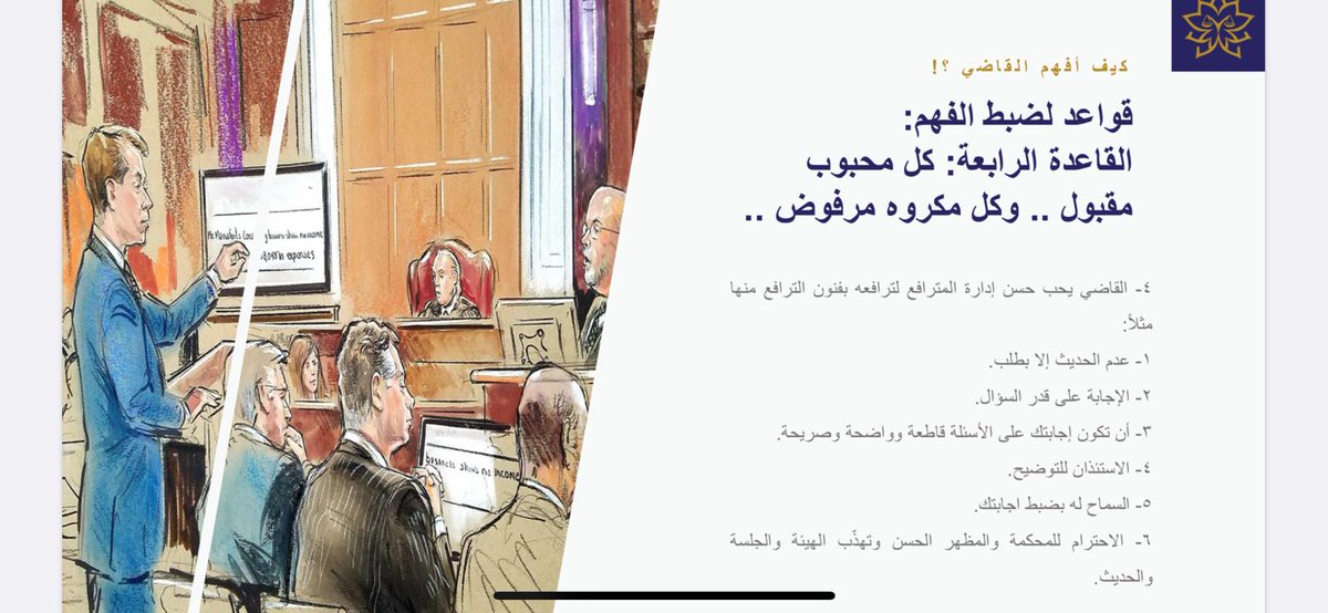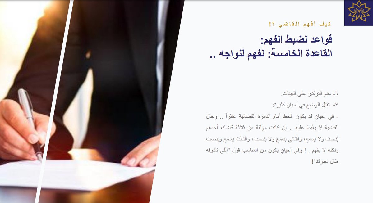 وعن قواعد من التجارب والملاحظات لضبط هذا الفهم .. تسهل على المترافع حسن التعامل مع القاضي وتفهم سلوكه لتحقيق أفضل أداء للترافع ..