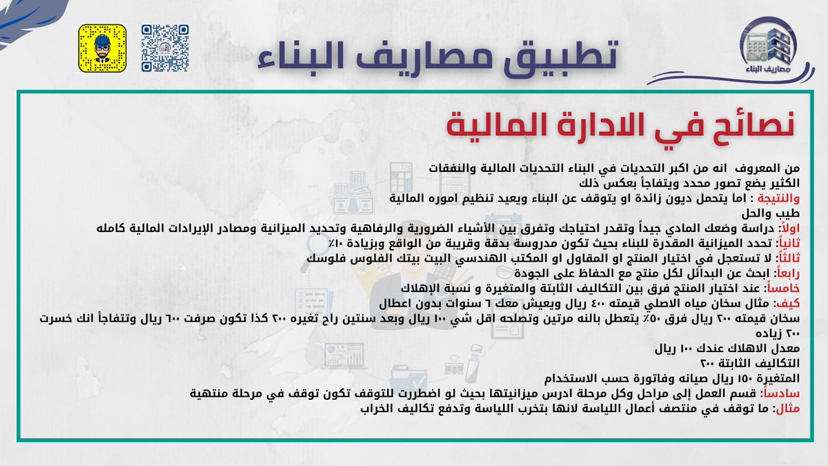 💢البوستر اللي فات كان نصائح عامة عن الادارة المالية اثناء بناء المنزل